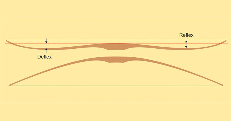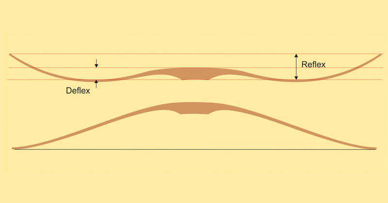 Prinzipiell kann gesagt werden: Je größer der Reflex ist, desto mehr Vorspannung hat der Bogen und desto mehr Energie wird gespeichert. Logischerweise haben auch die verwendeten Materialien einen Einfluss auf die Leistungsfähigkeit.