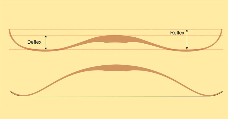 Mehr Reflex verspricht von vornherein höhere Geschwindigkeit, während mehr Deflex im Abschuss ruhiger ist. Anfänger sind daher gut beraten, einen Bogen mit weniger Reflex zu wählen.