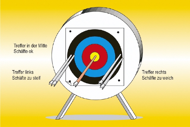 Landen die Pfeile links von der gedachten Mittellinie, sind sie zu steif.