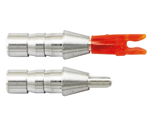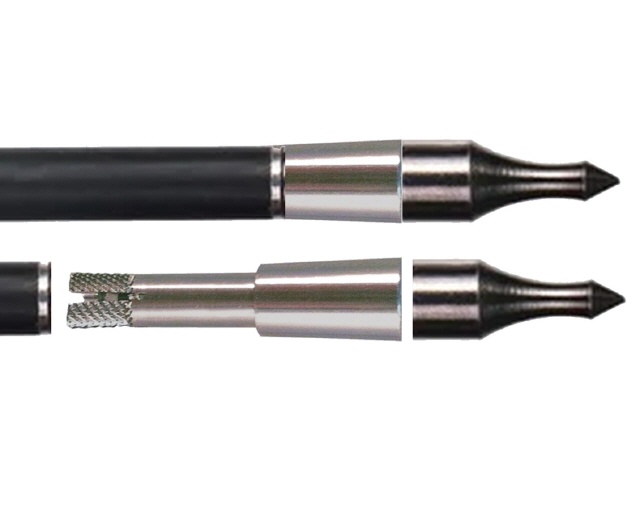 Können nur eingesteckt sein wie beim Carbonpfeil (oben) oder auf einen angespitzten Konus, wie bei einem Holzpfeil (unten).