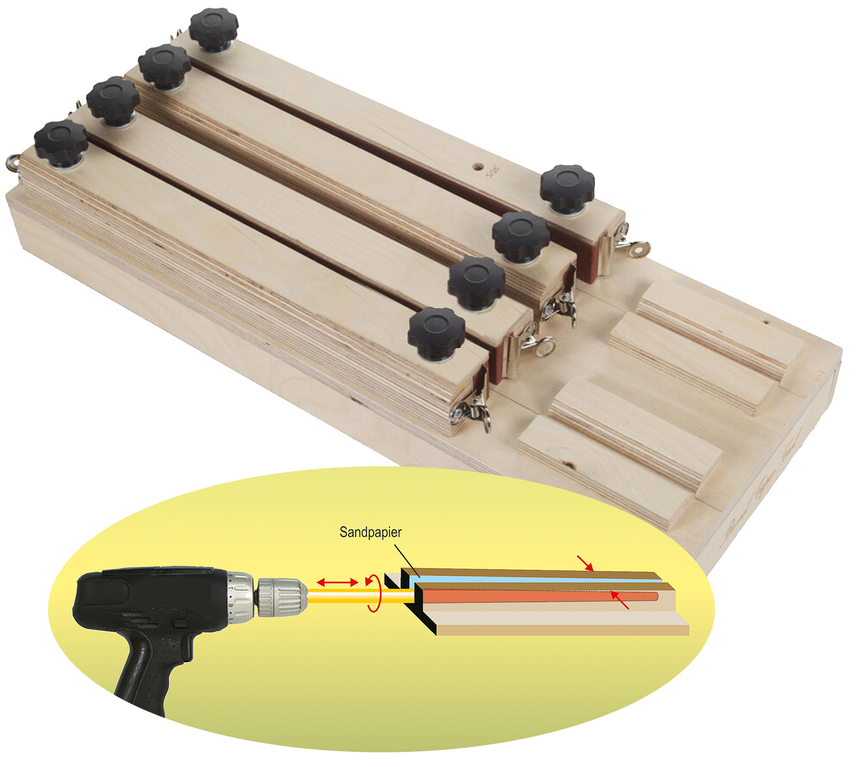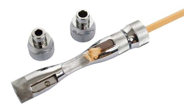 Solche Tools sind für Holzpfeile gedacht. Diese gibt es in den Durchmessern: 5/16, 11/32 und 23/64 Zoll. Dabei gibt es im Wesentlichen zwei Varianten von Werkzeugen. Zum einen sind es Geräte, die einen Konus für die Nocke und für die Spitze anbringen. Die Palette reich hier vom einfachen Spitzer bis hin zu Geräten, die mit einem Akkuschrauber betrieben werden. Die Firma Woodchuck bietet ein Profigerät an, bei dem der Konus mit einer Schleifscheibe angebracht wird.