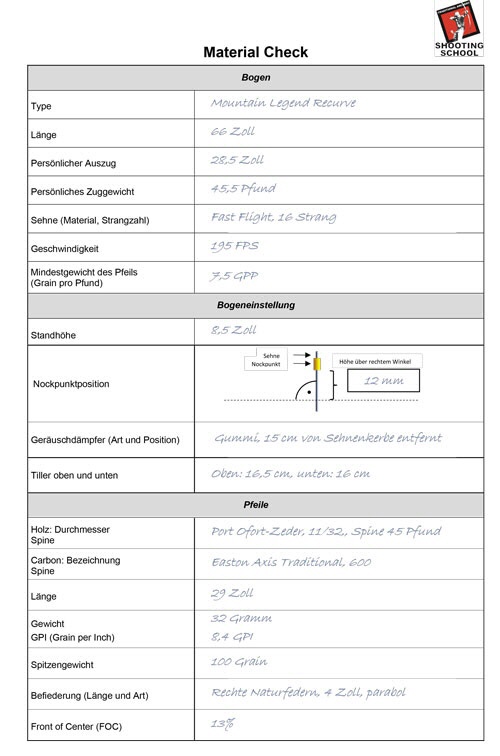 Wem sein Equipment wichtig ist, sollte auch wissen, welche Eigenschaften es hat. Hier wird in der Folge ein Material-Check vorgestellt, mit dem man alles auf einem Blatt Papier festhalten kann.
