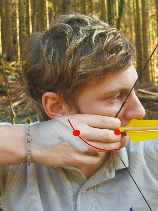 Als Ankerpunkt bezeichnet man jenen Punkt im Gesicht, den die Zughand beim Abschuss berührt. Die Wahl dieses Punktes hängt sehr stark von der eigenen Zieltechnik ab. Je kleiner der Winkel zwischen Sehlinie und Pfeil ist, desto besser ist es. Man kann mit dem Mittelfinger oder auch mit dem Zeigfinger im Mundwinkel ankern.