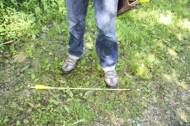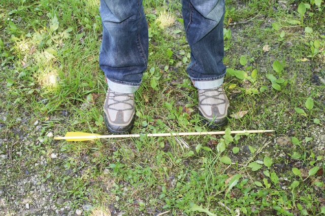 Der parallele Stand lässt sich auch am leichtesten überprüfen. Die Steinermethode ist dabei sicher sehr hilfreich. Dabei wird entweder der Bogen oder ein Pfeil so über die Fußspitzen gehalten, dass damit die Verlängerung von einer zur anderen Fußspitze hergestellt wird. Nun sollte der Bogen oder der Pfeil genau in das Ziel zeigen. Dass es nicht immer möglich ist, einen parallelen Stand einzunehmen, ist schon klar. Wenn man es aber versucht, wird man in den meisten Fällen den zur Situation passenden Stand finden.