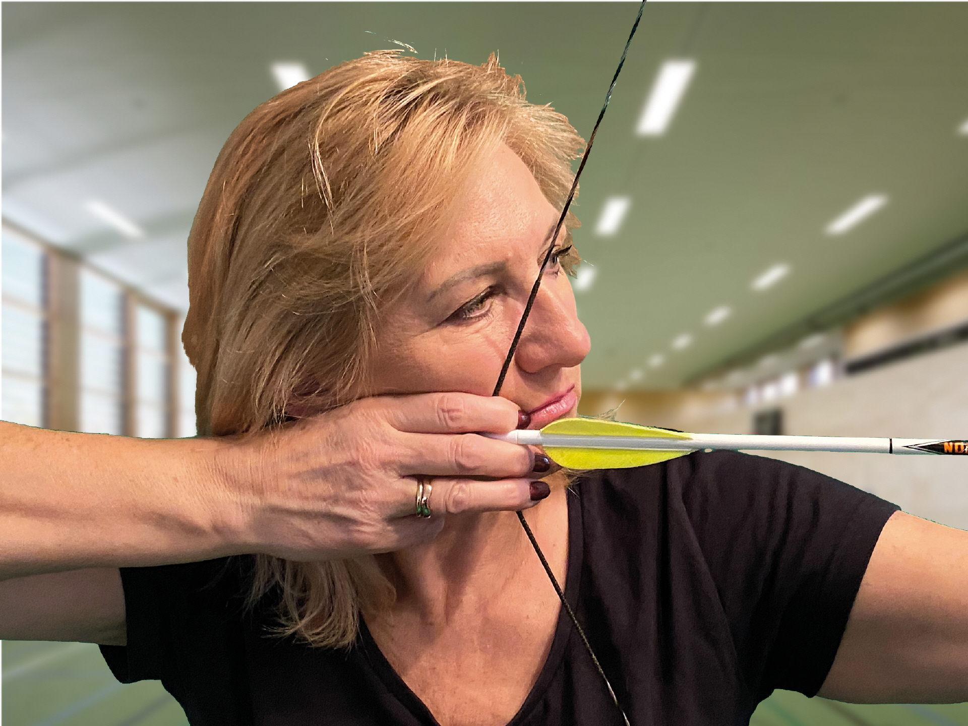 Die beste Lösung ist relativ einfach. Man muss den Handrücken der Zughand flach halten. Damit ist eigentlich fast garantiert, dass der Pfeil nicht mehr zur Seite weggeht.