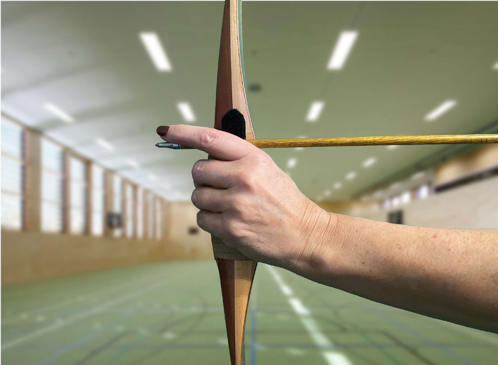 Eine Lösung könnte sein, dass man mit Untergriff schießt. Das ist aber in Wettkämpfen nur in den Recurve-Klassen erlaubt. Mit dem Langbogen muss man hier mediterran schießen.