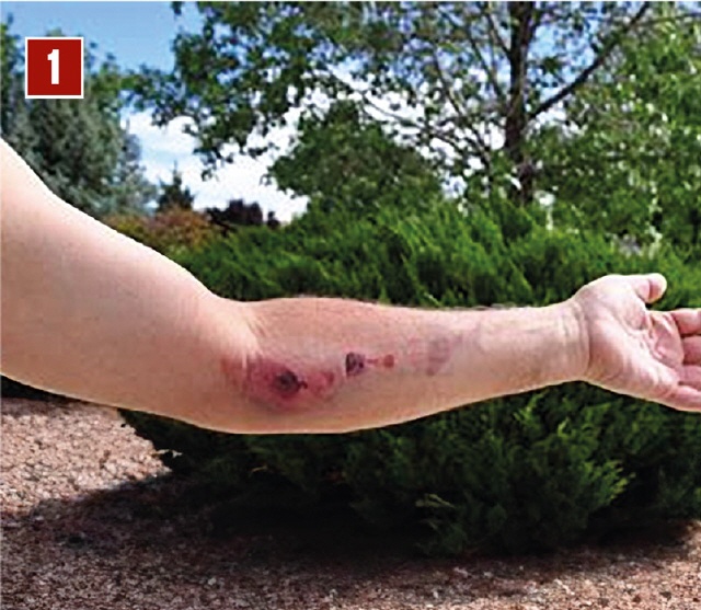 Position 1 ist die normale Haltung, die ein Schütze mit Hypermobilität hat, wenn er schießen möchte. Dabei streift die Sehne wie schon dargestellt stark am Unterarm (Bild 2).