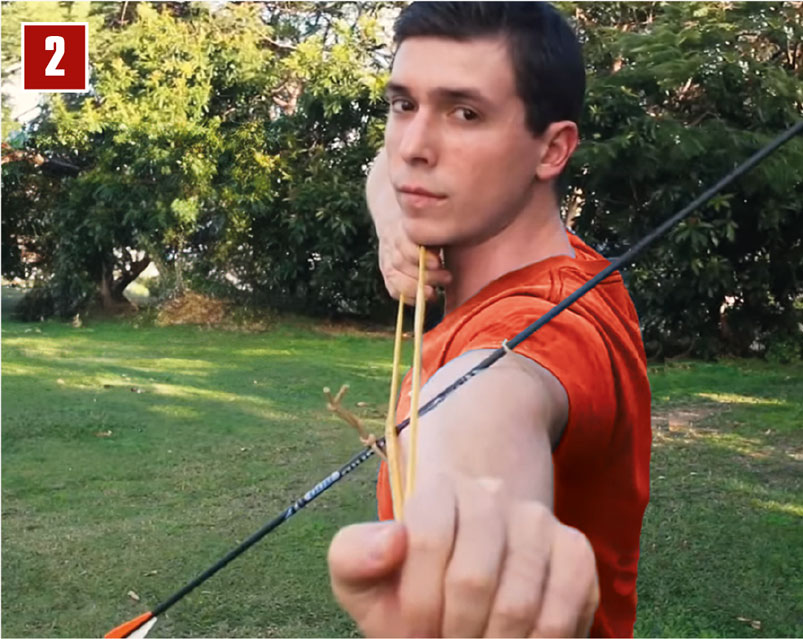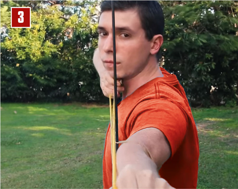 Um das zu vermeiden, sollte man bei Position 3 noch einige Grad an Ausdrehung dazu geben. Damit ist man auf der sicheren Seite und die Sehne schlägt sicher nicht an (Bild 4).