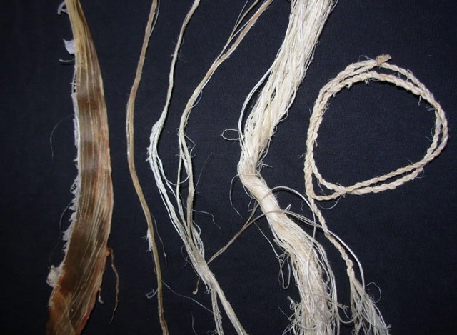 Pflanzenfasern wurden früher und werden auch heutzutage für die Herstellung von Schnüren und Seilen verwendet. Einige dieser Fasern sind nicht nur in großer Menge verfügbar, sondern auch für die Herstellung von Sehnen geeignet. Dazu wurden in unseren Gegenden Flachs und Hanf verwendet, in tropischen Gefilden Schilf, Bambus oder die Rinde verschiedener Bäume.