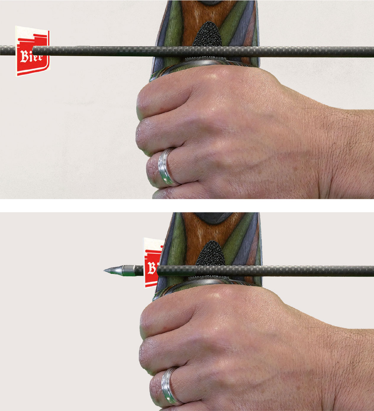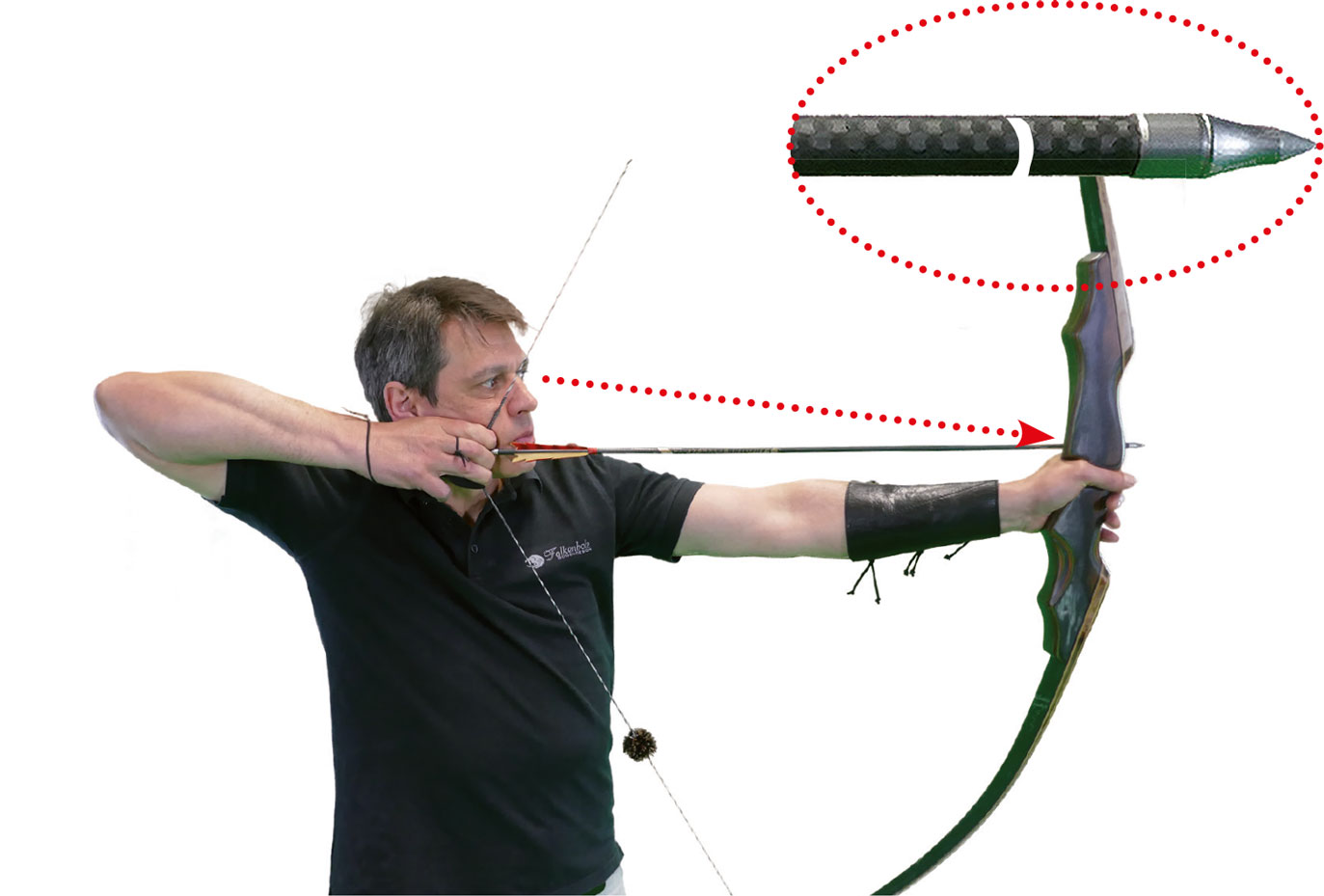 Man kann sehen, ob die Pfeilspitze vor dem Abschuss nach vorne wandert. Ist das der Fall, schießt man nicht aus der Rückenspannung. |