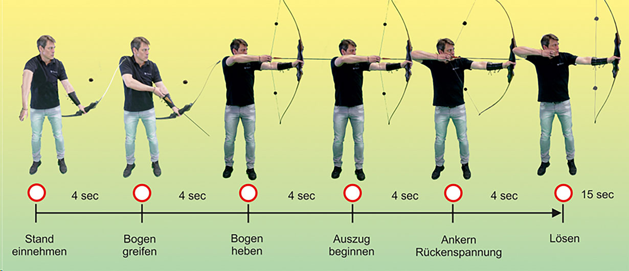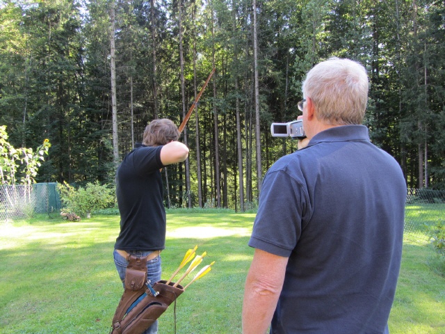 Voraussetzung dafür ist aber, dass man selbst weiß, wie man es richtig machen sollte. Um das herauszufinden, kann man mit einem leichten Bogen das Ganze vorab einmal proben. Man kann mit dem Rohrbogen oder einem 20-Pfund-Bogen schießen und sich die optimale Technik einprägen. Mit seinem eigenen Bogen müsste es dann gleich aussehen.