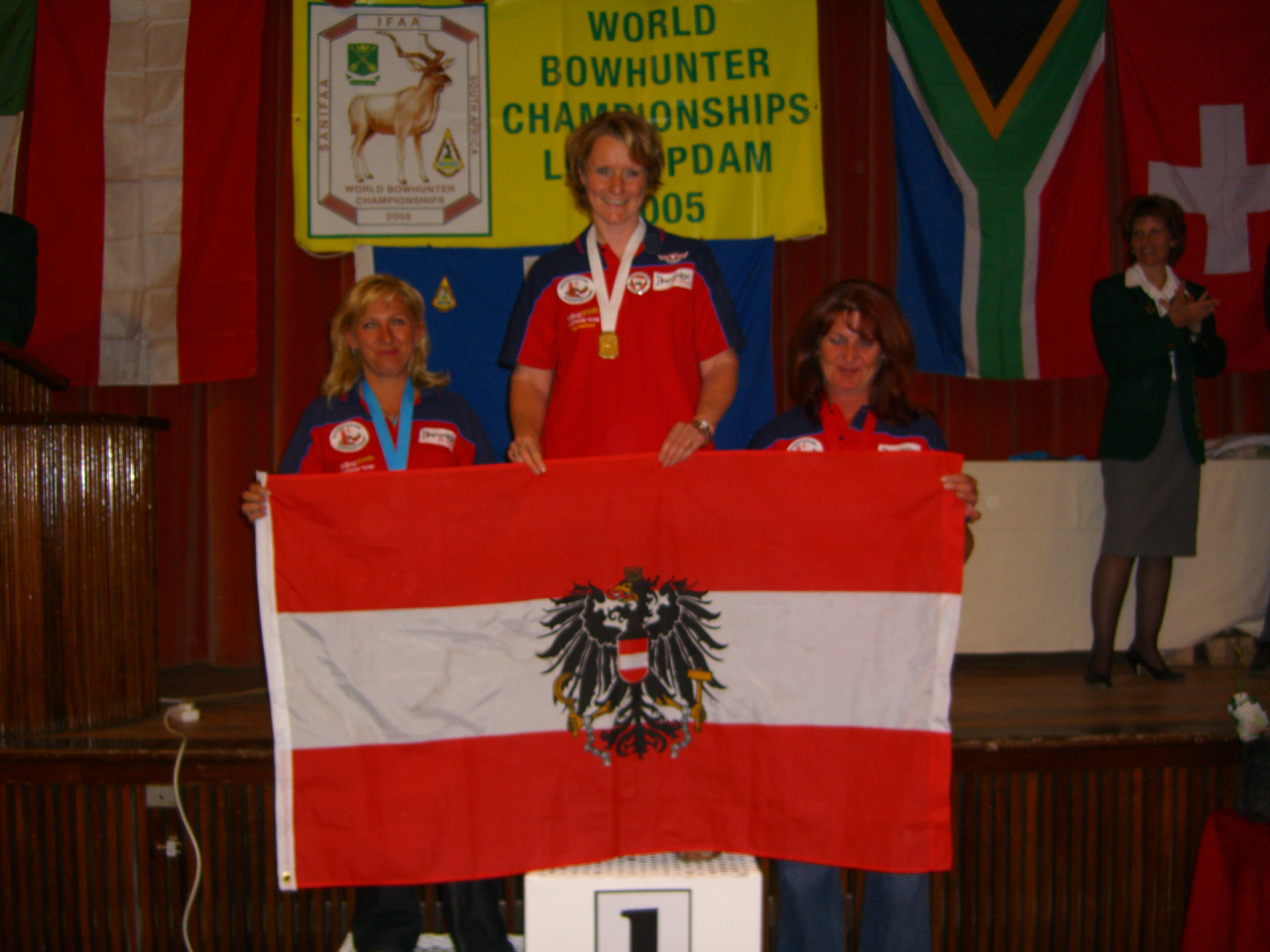 Zum Sportlichen: Die AFAA (Austrian Feld Archery Assn.) war mit insgesamt 11 Schützen in drei Bogenklassen am Start. In der Klasse Langbogen konnte Karin Vorderegger (CBH Salzburg) ihren Titel von 1997 erfolgreich verteidigen. Nach dem ersten Wertungstag lag sie auf dem fast aussichtslosen 9. Platz im rund 50 Teilnehmerinnen umfassenden Starterfeld und hatte wenig Aussicht auf einen Spitzenplatz. Mit der jeweils höchsten Punktezahl in den folgenden 3 Tagen konnte sie schlussendlich aber doch noch einen recht deutlichen Sieg vor der Deutschen Susanne Eichelsdörfler erringen. Auf dem 3. Platz landete die Italienerin Guilia Barbaro.