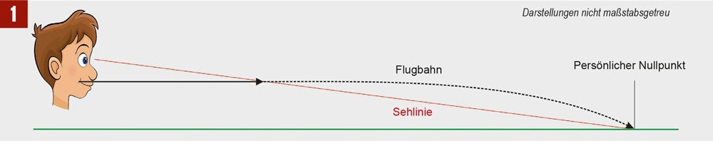 Die Nullpunktentfernung ist für jeden Schützen individuell zu ermitteln. Bei Zielen, die näher sind, muss man die Spitze unter das eigentliche Ziel halten, bei Entfernungen, die weiter als der Nullpunkt sind, muss sie darüber gehalten werden.