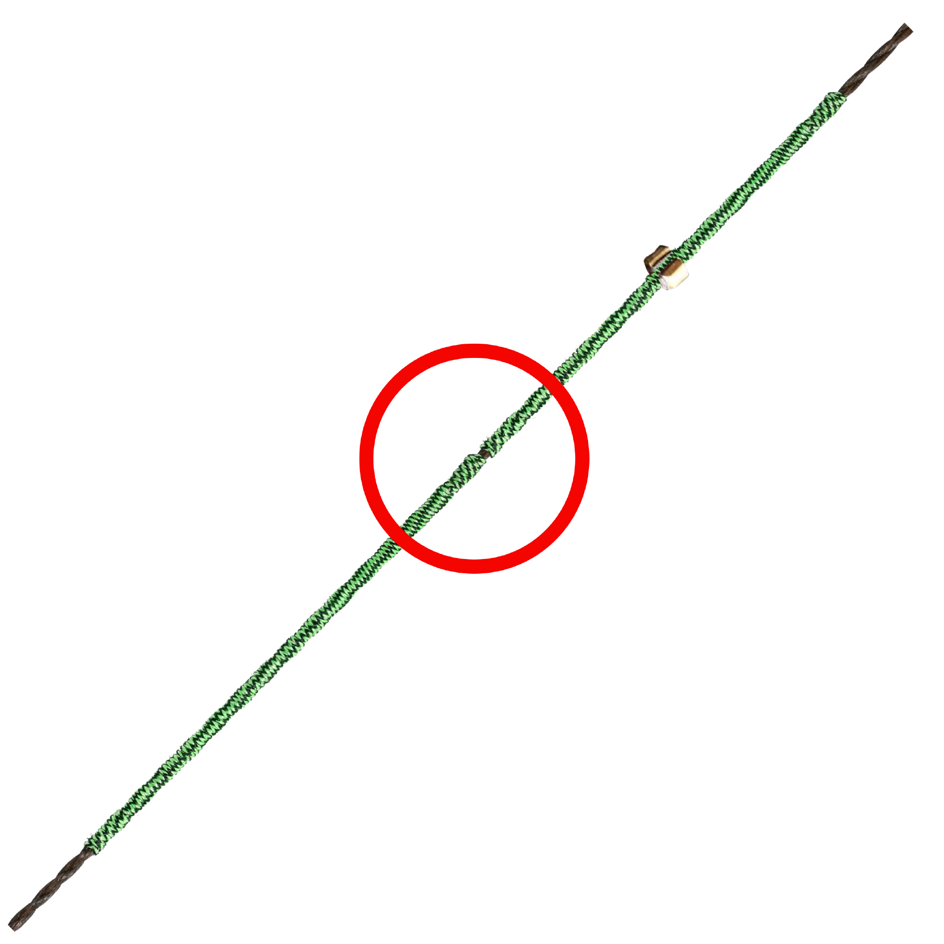Bei solchen Bögen kann eigentlich jedes Sehnenmaterial verwendet werden. Auch Materialien, die sich noch weniger dehnen als Fast Flight, können genommen werden. Ist das Zuggewicht relativ leicht, kann man auch die Strangzahl reduzieren. Um noch mehr Geschwindigkeit zu erreichen, kann man eventuell auf Geräuschdämpfer verzichten.