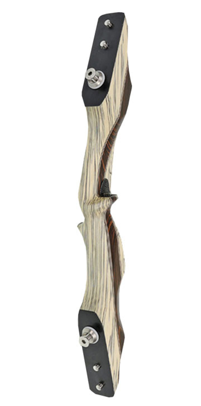 Der Griff ist ein wichtiger Teil des Risers, da man ihn ja die gesamte Zeit beim Schießen hier halten muss. Er sollte bequem sein und einen sicheren Halt bieten und der Handform gut angepasst sein. Um den Komfort zu verbessern, kann er aus verschiedenen Materialien wie Holz oder Kunststoff bestehen.