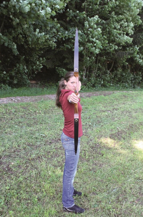 Der Bogen braucht also nur so weit umgelegt werden, bis man das Ziel wieder dreidimensional sieht. Das kann man einfach feststellen, indem man das linke Auge schließt. Sieht man das Ziel nicht, war es zu wenig.