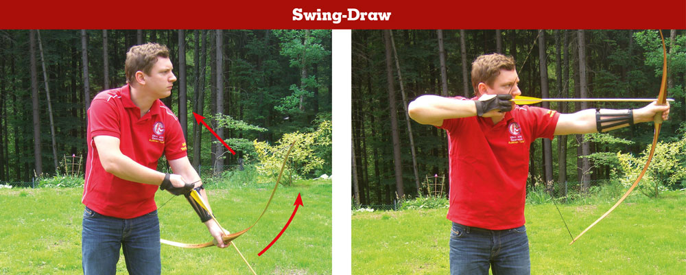 Im traditionellen Bogenschießen gibt es verschiedene Techniken, den Bogen auszuziehen, die wichtig für den Schussablauf sind. Fred Asbell hat sie in den frühen 1990er-Jahren in seinen Büchern bereits vorgestellt. Zwei der bekanntesten sind der Swing-Draw und der Set-Arm-Draw. Letztere wird auch Schießen aus haltender Position genannt.