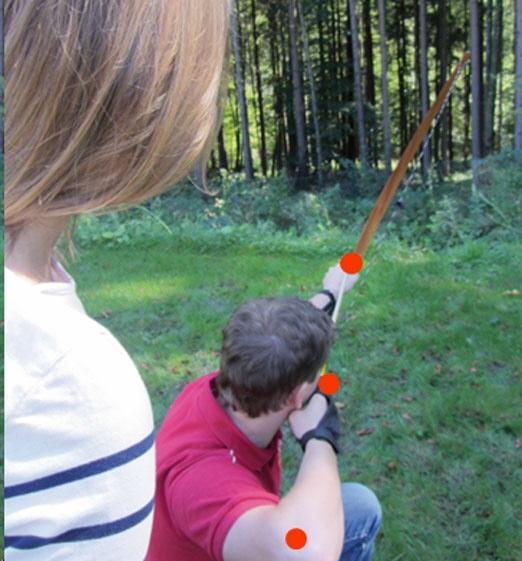 Man kann sehen, ob die Pfeilspitze vor dem Abschuss nach vorne wandert. Ist das der Fall, schießt man nicht aus der Rückenspannung. |
