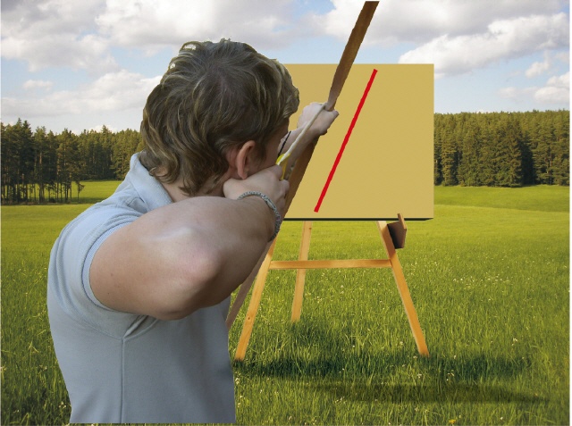 Ein Partner kann von hinten sehen ob die 3 Punkte in einer LInie liegen. |