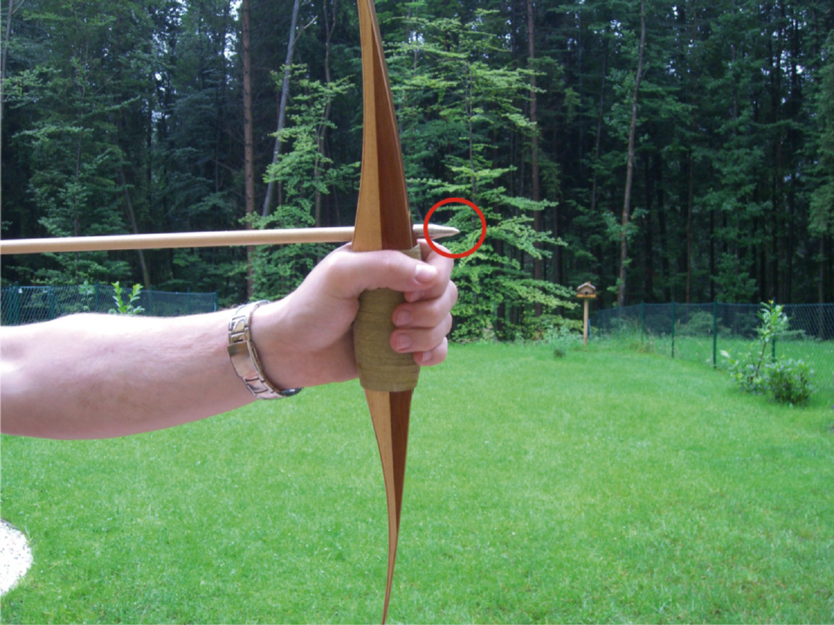 Trifft jemand einmal zu tief, das andere Mal viel zu hoch und kann nicht sagen warum, sollte man folgendermaßen vorgehen. Unter der Annahme, dass bei Schüssen auf das gleiche Ziel die Pfeilspitze im Raum beim Abschuss immer an der gleichen Stelle sein muss, kann man dies sehr leicht überprüfen. Man schießt mehrere Pfeile aus der gleichen Position immer auf das gleiche Ziel. Trifft man nicht, darf man aber nicht korrigieren! Ein Partner stellt sich nun in einer Entfernung von rd. drei Meter so hin, beobachtet die Pfeilspitze und merkt sich im Hintergrund genau den Punkt, an dem sie beim Abschuss stand. Das macht man öfter hintereinander. Verwendet man eine Videokamera, kann man das noch wesentlich besser feststellen.