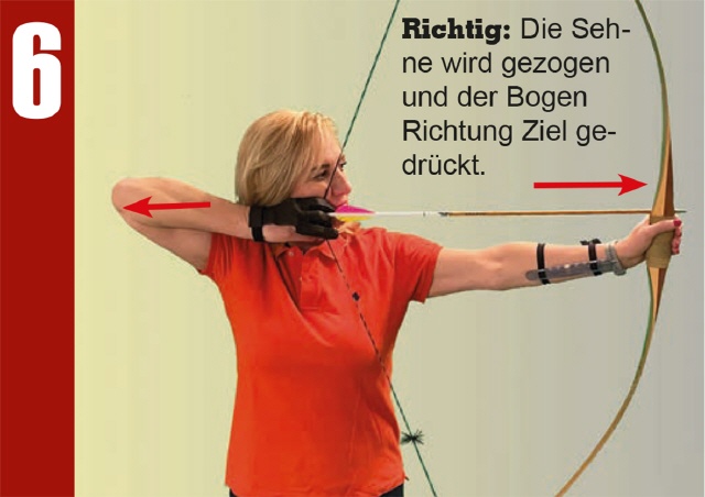 Hat man mit diesem Problem zu kämpfen, sollte man zuerst überprüfen, ob das Zuggewicht des Bogens auch passt (vgl. dazu Artikel „Ist er zu stark, bist du zu ...„). Auch Anfänger sollten wissen, dass der Bogen nicht zu stark sein darf. Wenn man das Zuggewicht nicht beherrscht, wird man auch den Auszug nicht exakt ausführen können und wird unweigerlich zittern.
