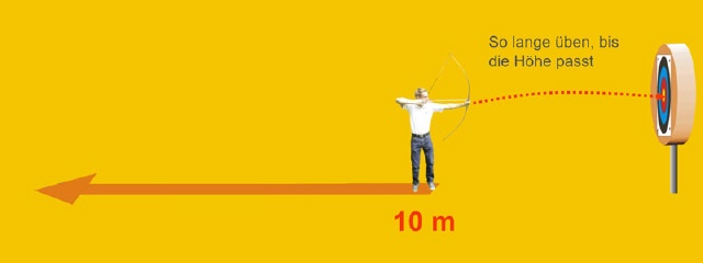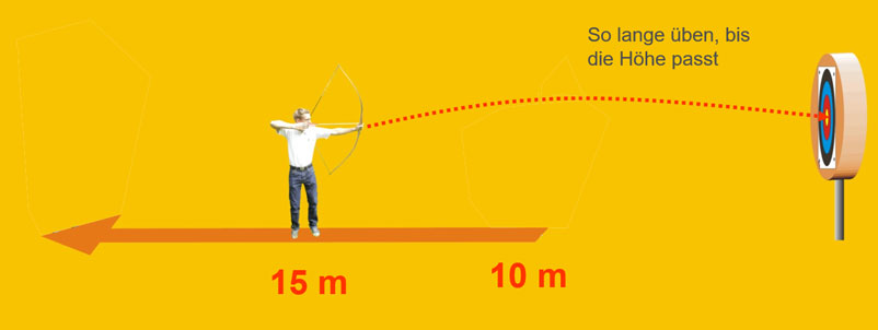Wer nur den Punkt, den er treffen möchte, betrachtet und den Winkel (Höhe) des Bogenarms unbewusst in die richtige Position bringt, schießt instinktiv.