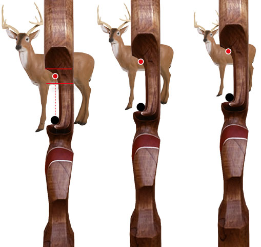 Diese Variante funktioniert nur meit einem kleinen Bogenfenster und auf Distanzen bis rd. 30 Meter (WA-Entfernungen). Dabei wird nur ein einziger Punkt am Bogenfenster verwendet. Idealerweise ist er in der Mitte der Rundung oben am Fenster. Dieser Punkt liegt nämlich genau über dem Pfeil. Und mit diesem Punkt wird gezielt.