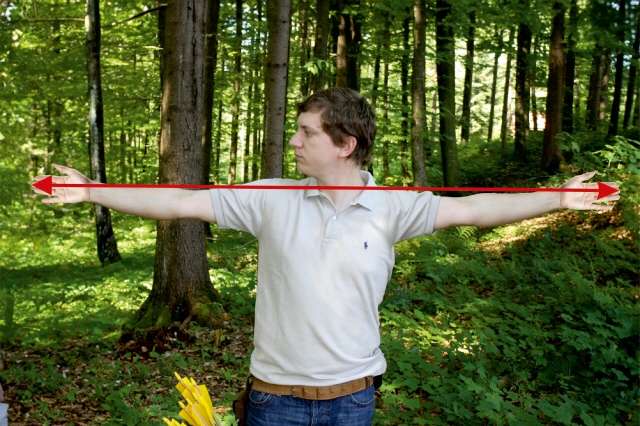 Der erste Schritt besteht darin, Deine Armspannweite zu messen. Stelle Dich dazu in eine natürliche Haltung, mit den Armen waagrecht zur Seite ausgestreckt, und messe den Abstand von der Spitze eines Mittelfingers zur Spitze des anderen Mittelfingers.