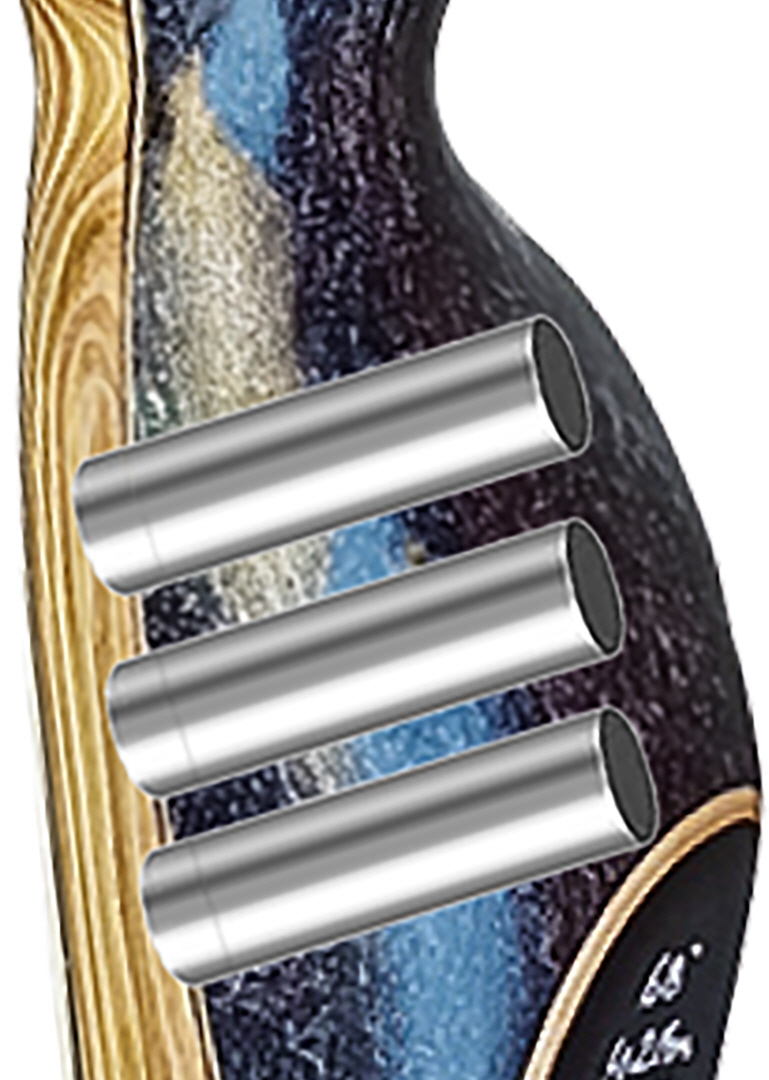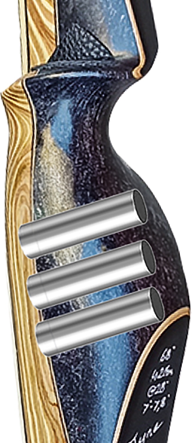 6. Stabilisatoren Bei Recurvebögen – speziell in der Bowhunter Recurve-Klasse (BHR) – dürfen Stabilisatoren bis 12 Zoll Länge eingesetzt werden. Sie dämpfen Vibrationen und verhindern das Verdrehen des Bogens. So gleichen sie Technikfehler beim Lösen aus und erhöhen die Präzision. |