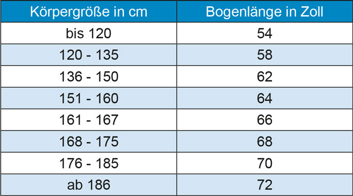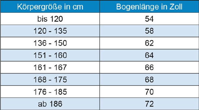 Körpergröße und Bogenlänge: Vorgeschlagene Längen für Langbögen |