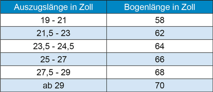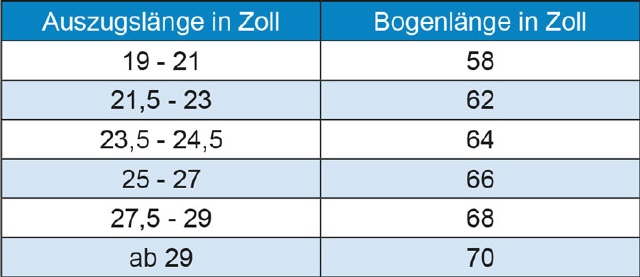 Auszug und Bogenlänge: Vorgeschlagene Längen für traditionelle Recurves |