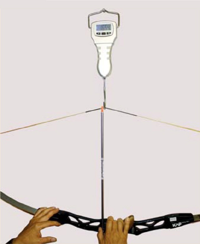Aber Vorsicht! Bei solchen Tests neigt man dazu extrem weit zu ziehen. Dann erhält man zwar ein Ergebnis, aber sicher nicht das Zuggewicht, welches man beim „normalen" Schießen auch auf den Fingern hat. Man sollte daher den Test öfter machen und dabei darauf achten, dass man möglichst realistisch ziehet.