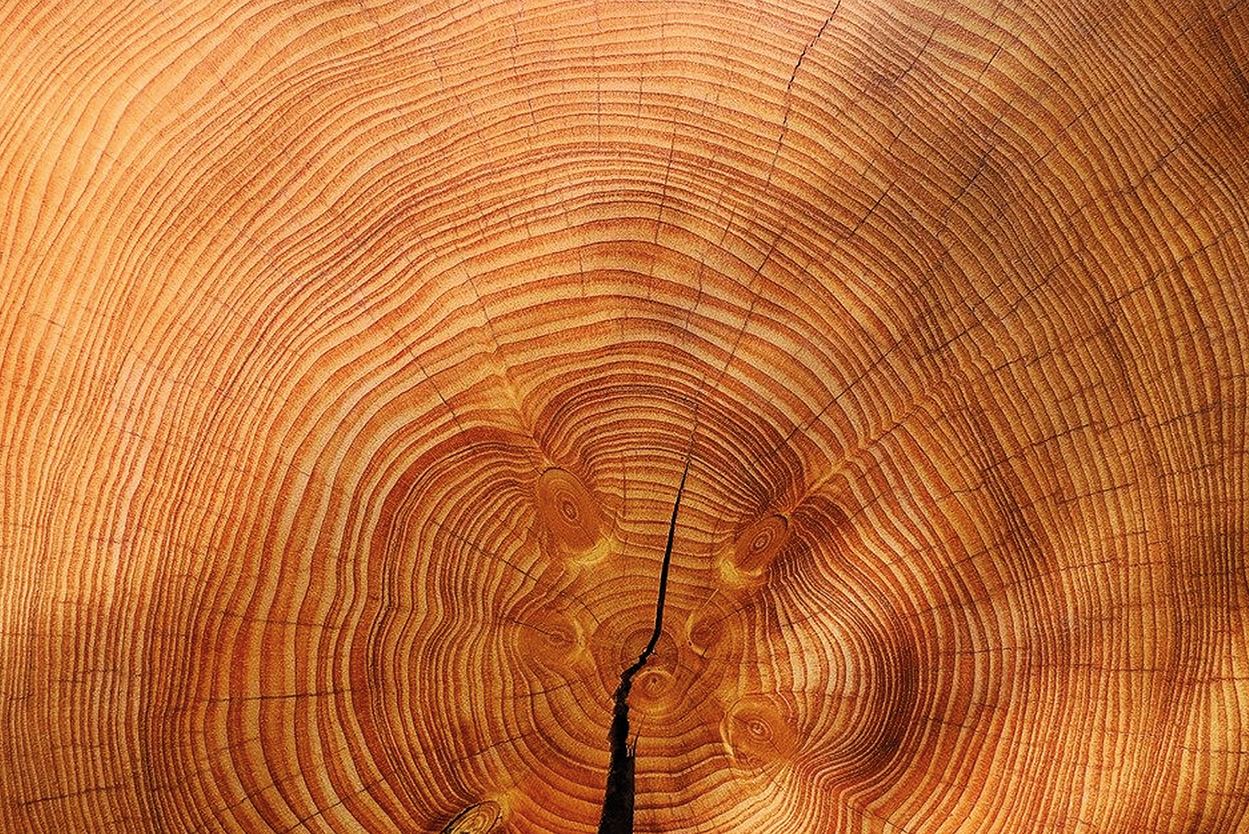 Schneidet man einen Baumstamm durch, so sieht man im Querschnitt eine ringförmige Maserung, die man als Jahresringe oder Holzringe bezeichnet (Bild 1). Die Jahresringe spiegeln Entwicklungsphasen in der Vegetationsperiode wider. Je besser die Wuchsbedingungen nach der Ruhepause, desto größer ist das Wachstum und umso breiter gerät der Jahresring. Die Jahresringe sind sowohl die dunkleren Kreise und das helle Holz dazwischen. Die größeren, helleren Bereiche sind das sogenannte Frühholz.