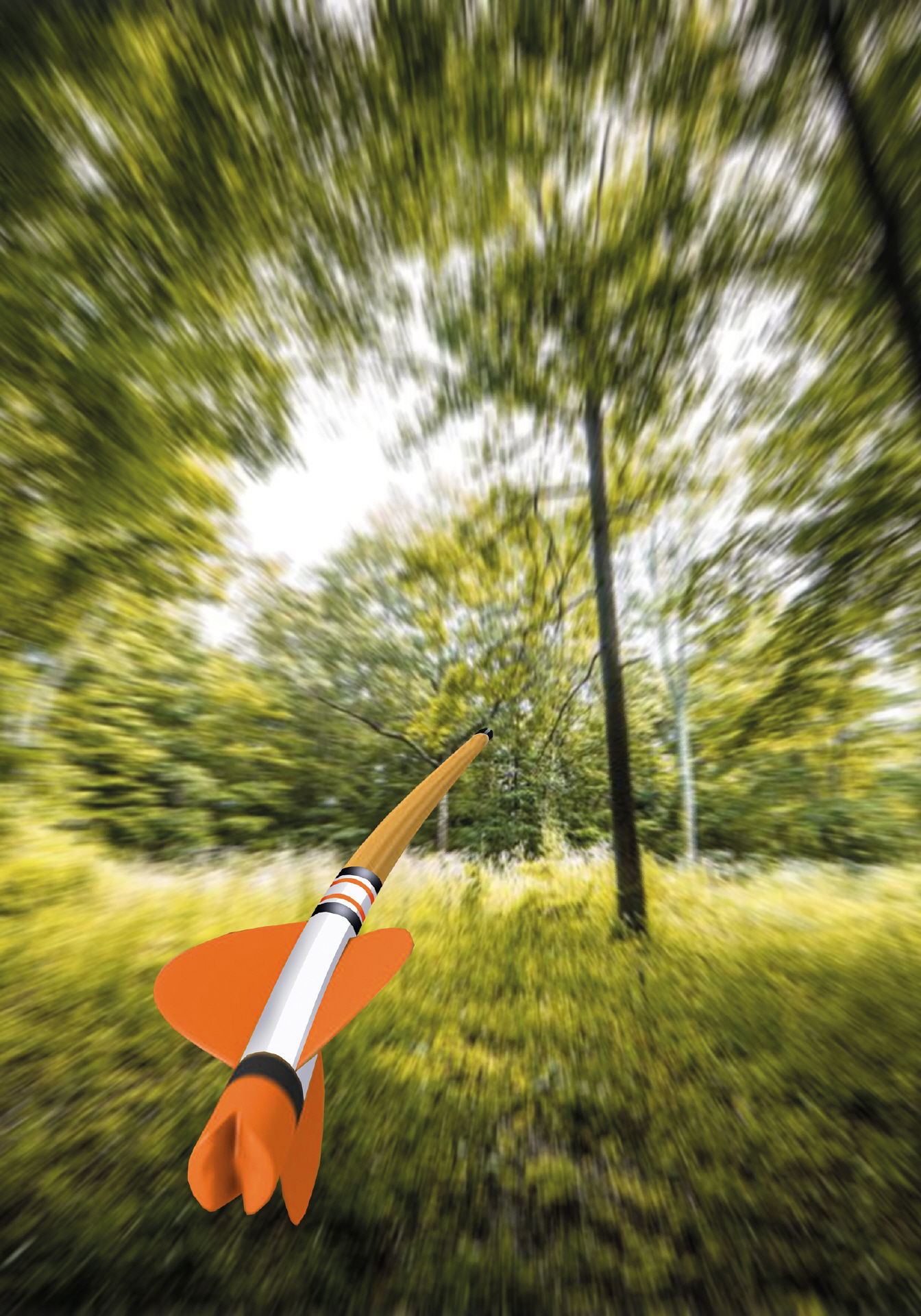 Als Nächstes kommt das Spitzengewicht. Wenn der Pfeil gestaucht wird, wirkt die Spitze am vorderen Ende als träge Masse, quasi wie ein Gegengewicht. Je geringer das Spitzengewicht, umso geringer ist diese Kraft.