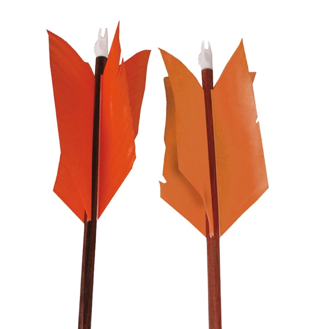 Ungeschnittene Federn in voller Länge werden um den Pfeilschaft gewickelt und bilden zwei ineinander gewundene Spiralen. Die Verwendung von zwei Federn anstelle von einer erzeugt einen Pfeil mit relativ kurzer Reichweite, selbst wenn er mit einem Compound geschossen wird. Solche Federn haben durch die Auffächerung der langen Federn die größte Bremswirkung.