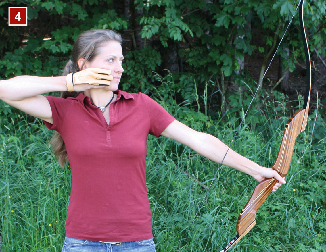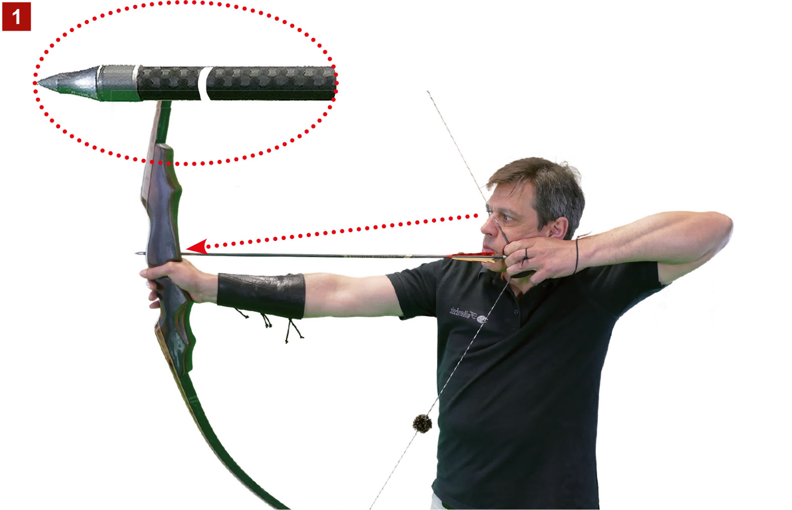 Dann könnte man sich einen Ring auf den Pfeil malen und immer so weit ausziehen, ohne allerdings zu schießen. Hier ist es wichtig zu beobachten, wie sich das anfühlt. Das sollte man über einen längeren Zeitraum machen.