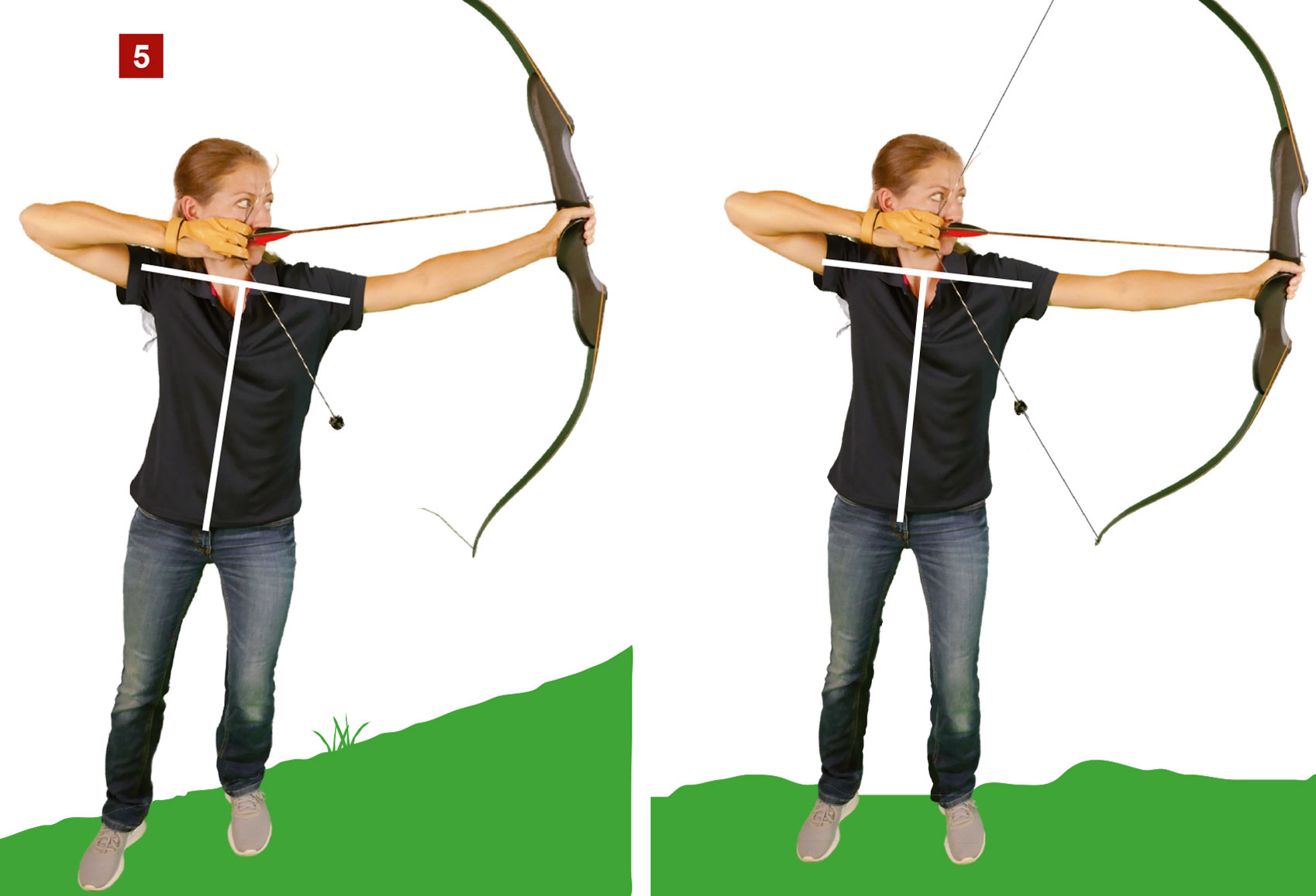 Ankert man einmal höher im Gesicht, einmal etwas tiefer, hat der Pfeil beim Abschuss unterschiedliche Winkel.