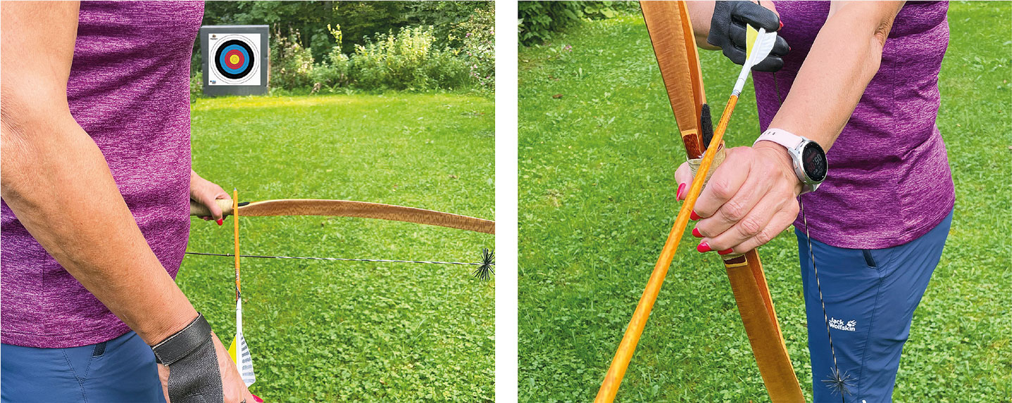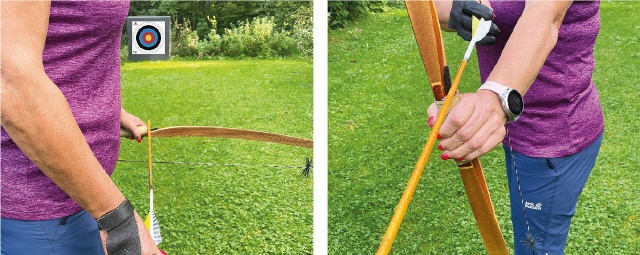 Wenn beides so geübt wurde, kann man es im Anschluss mit dem Bogen gleichzeitig ablaufen lassen.