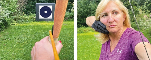 Man kann getrennt davon z.B. das Zielen mit Point of Aim ohne Bogen üben, indem man einfach den Pfeil so nimmt, als ob man schießt. Dann versucht man die Pfeilspitze auf einen vorher festgelegten Punkt zu halten.