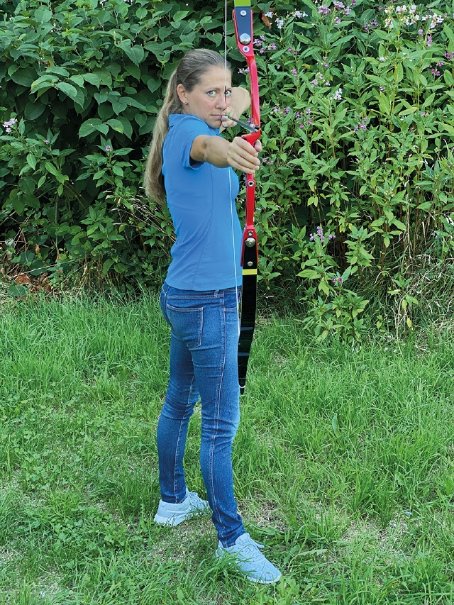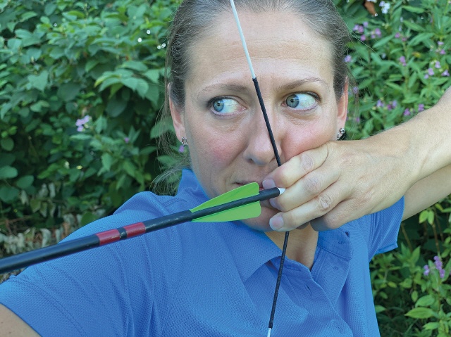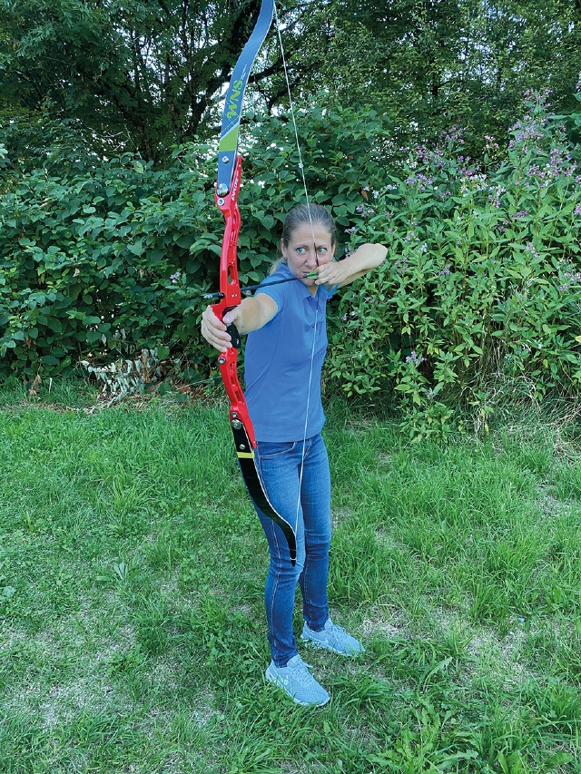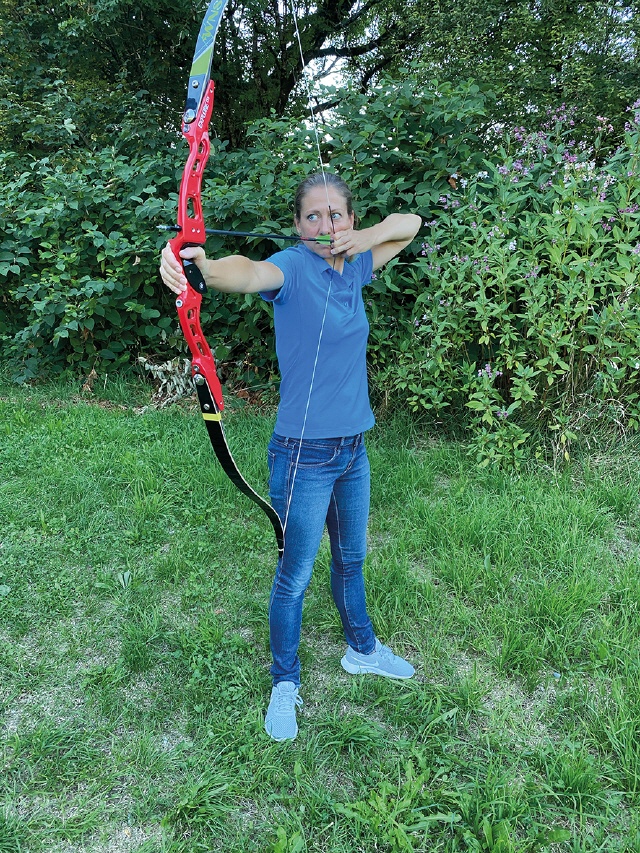 Wenn man die einzelnen Varianten ausprobiert, ist es ratsam, einen Kollegen zu bitten, darauf zu achten, wo die Sehne vor dem Abschuss steht. Ist zu sehen, dass die Sehne nicht anschlagen wird, gibt es ein Ok.