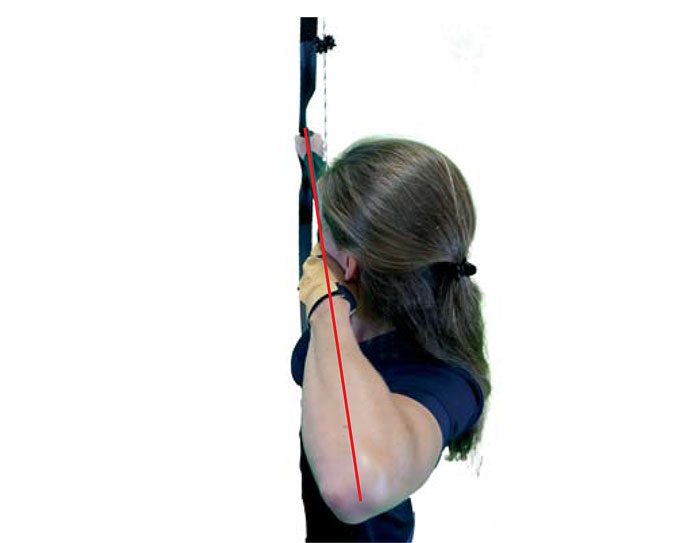 Logischerweise braucht man auch die nötige Kraft, um einen Schuss optimal ausführen zu können. Das zeigt sich in der Konstanz der Bewegung. Auch ist das Zittern des Bogenarms geringer. Lässt nämlich die Kraft nach, kommen die meisten nicht mehr in die Rückenspannung und bei längerem Halten fängt der Bogenarm zu zittern an.