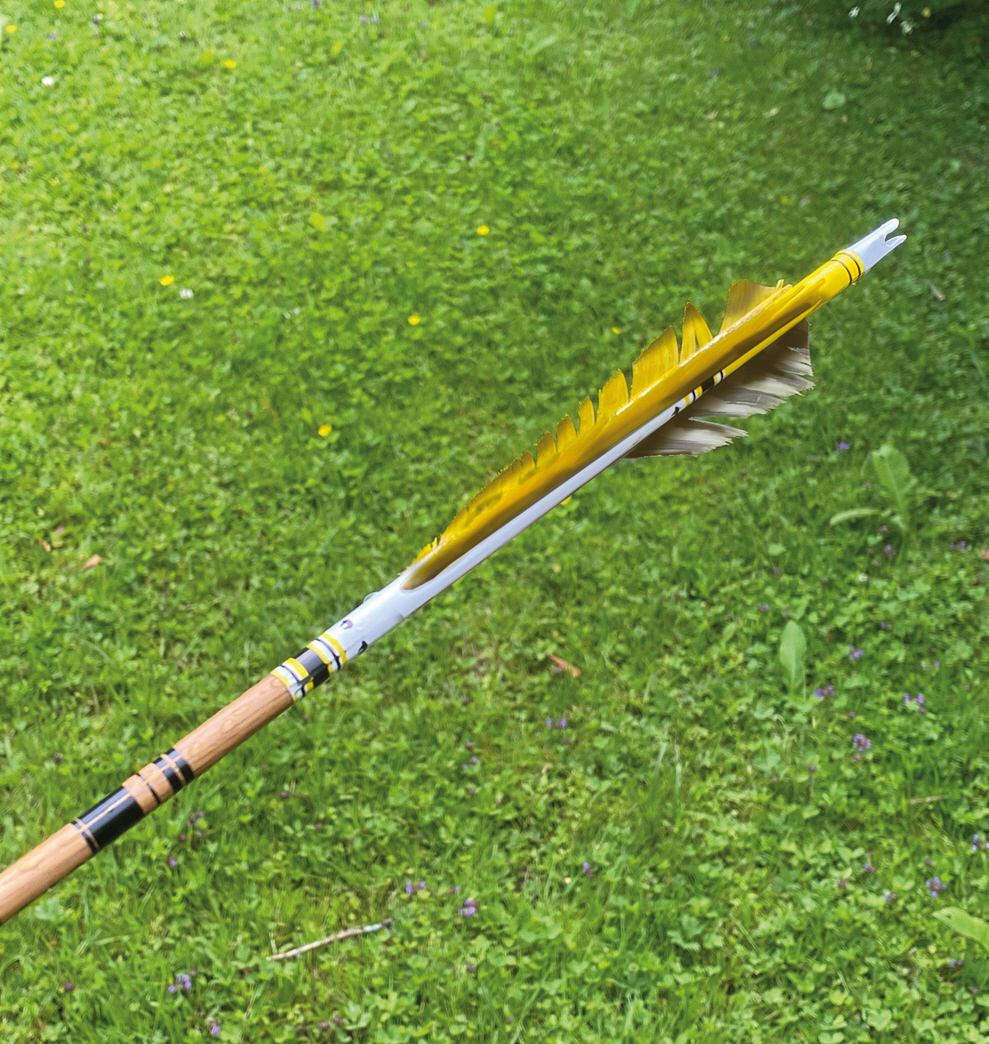 Oft passiert es, dass sich Federn teilweise oder ganz lösen. Und bei Regen werden sie nass. Vor allem dann, wenn man mit den defekten Pfeilen schießen muss, sollte man wissen, wie sie fliegen. Dazu kann man das mal austesten. Eine Feder wird von einem Pfeil entfernt und dann der Pfeil geschossen. Es geht dabei darum, herauszufinden, wie die Pfeile auf diese Beschädigung reagieren. Gleiches gilt für nasse Pfeile. Auch hier kann man drei nass machen und nur mit diesen schießen. Nur einige Schüsse sind vielleicht zu wenig. Man kann das ohne weiteres Mal auf einer halben Parcoursrunde testen.