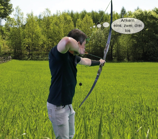 Frühes Lösen verhindern: Vor jedem Schuss geht man in den Vollauszug, macht einen 8er mit dem Pfeil und setzt wieder ab. ... Target Panic loswerden |